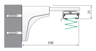 L' installazione a parete a sbalzo consiste nel fissare il profilo alla parete della camera, davanti al serramento oppure per dividere due ambienti, tramite l' ausilio dell 'accessorio per il montaggio a sbalzo.