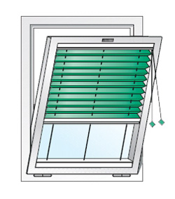 In caso di applicazione su finestre inclinate e/o basculanti si può installare il sistema Plì guidato, come si vede in figura a fianco.