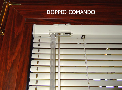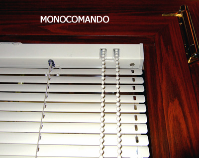 - a monocomando con catenella che funge sia per orientare le lamelle che per aprire e chiudere la veneziana. La catenella a seconda del senso che viene tirata si aprono o chiudono le lamelle.