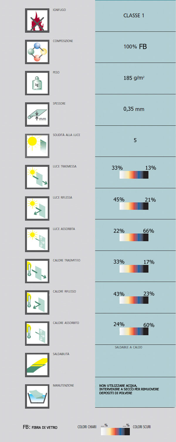 Tessuto attenuante ignifugo per tende verticali